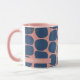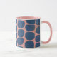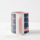 Abstract modish shapes, personalised holiday mug. Festive shades of pink, blue and faux gold shapes with template text line for name or initials.