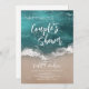 Romantic coastal themed couples shower invitation features beautiful moody abstract watercolor sparkling ocean wave and beach background, toped with stylish script and elegant font event details, modern and simple, great for sand beach wedding, tropical destination wedding, coastal ocean themed wedding.