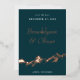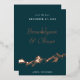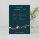 This save the date announcement card features an abstract painted mountain in real rose gold foil. The couples' names are highlighted in a large and elegant font for a sophisticated feel. The rose gold foil adds a perfect painterly touch making this save the date announcement really stand out from the crowd. The dark green background can be customised to match your wedding colours. The back of the card has a place to include a wedding website address.