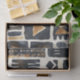 Hand-painted African mud cloth design featuring bold geometric shapes in earthy tones of black, brown, and cream.