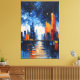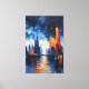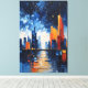 A striking abstract night skyline painted with bold impasto strokes. Deep blues blend with warm vermilion and golden highlights, creating a textured metropolitan atmosphere full of depth and artistic energy. Perfect for modern homes, studios, and collectors who appreciate expressive contemporary art.