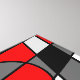 Original geometric abstract design in red, black, grey and white by Ron Trickett