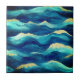 Abstract Ocean Waves Blue and Gold Watercolor Tile