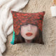 Abstract oil painting showing woman face and red r cushion