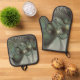Abstract Olive Sage Green Grey Fractal Art Fantasy Oven Mitt & Pot Holder Set