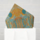 abstract colours of pumpkin orange, teal, blue and gold yellow