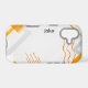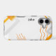 Modern art on a mobile phone case. Abstract and orange on white, contemporary, with some elements of Bauhaus.