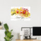 Artistic colour combination in yellow, green, orange and gentle pink and a calligraphy script thank you.