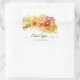 Artistic colour combination in yellow, green, orange and gentle pink and a calligraphy script thank you.