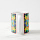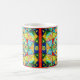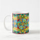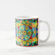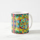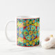 Vibrant geometric patterns fill the image, featuring circles, triangles, and swirls in a kaleidoscope of colours including blue, green, yellow, and red. The intricate design creates a sense of symmetry and balance.