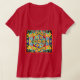 Vibrant geometric patterns fill the image, featuring circles, triangles, and swirls in a kaleidoscope of colours including blue, green, yellow, and red. The intricate design creates a sense of symmetry and balance.