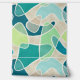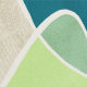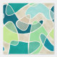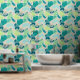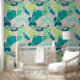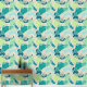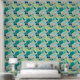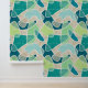 This wallpaper features a modern abstract pattern of overlapping blobs in teal, turquoise, lagoon, blue, mint and aqua on beige for a contemporary look.