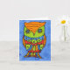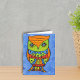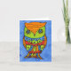 This colourful owl is my original acrylic painting. He is done in vivid colours of orange, green, and blue. He has blue star eyes and is done in an abstract style. The background is a various bright blues. See my store Art by MAR for matching products with this design.
