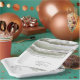 A paint strokes watercolor in sparkling shades of olive green with splashes of lavender accents the pieces of this beautiful wedding suite. The wedding paper plate shown here also features elegant handwritten calligraphy 'We Do' and a template to easily add your own names and wedding date. Search ID886 to see other pieces and colour choices for this set.