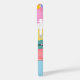 Colourful abstract painting with spatters and drips and colour patches in black, blue, purple, red, yellow, white and pink with your name.
