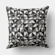 An original hand drawn continuous pattern made up of an irregular grid of squares each divided diagonally in random ways creating triangles some shaded, some unshaded with some further decorated.