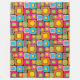A colourful ethnic inspired abstract pattern made up of hand drawn squares.