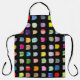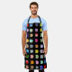 This apron is decorated with a colourful watercolor abstract pattern on a black background.
