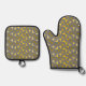 Abstract pattern yellow and grey oven mitt & pot holder set