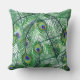 Bold peacock feather images in tones of blue green, gold, and royal blue are overlaid and grouped together to form an interesting pattern on this throw pillow. Very attractive in a multitude of home decors. Both sides of the pillow have the same design. Be sure to see the coordinating products in our store.