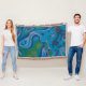 Wrap yourself in a sea of liquid colour. This design captures the essence of a peacock’s elegance through an abstract, psychedelic lens. Intricate swirls of cerulean, turquoise, and plum dance across the fabric, creating a hypnotic visual rhythm. Whether draped over a sofa or used as a statement bedding piece, this blanket brings a touch of avant-garde artistry and cosy sophistication to your home.