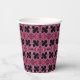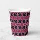 This paper cup features a beautiful fractal pattern with a black percent sign on an abstract red, pink, and purple background.