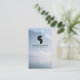 An abstract, deconstructed logo of a camera lens is combined with your name or studio name on this photographer's business card template. Replace the background photo with your own photography, or use the mountain photo included. © 1201AM CREATIVE