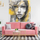 Abstract picture yellow and gray woman face canvas print