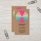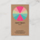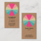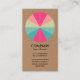 A clear stylish and attractive business card template with a 12 segmented circle motif in a palette of 5 colours. Main company details on the front, with name and personal contact on the back, with the same motif and style.