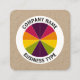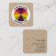 A business card template with a 12 segmented circle motif in a palette of 5 colours. The symbol is placed in a white circle with curved text company name and business type with other contact details on the other side. Ready to be customised, suitable for a variety of businesses/uses.