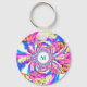 Abstract pink blue retro floral mandala monogram key ring