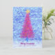 Abstract Pink Christmas Tree with Blue Brick Wall Card