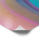 Pink, lilac, purple, turquoise and gold paint brushed freely on the canvas to form a pleasing abstract art piece.