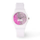 Purple, white and bright pink girls graphic sporty abstract watch. Personalise wih your name. Designed inspired from the beach and surf at Inverloch, Australia by Sarah Trett.