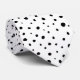 This tie features an abstract pattern of black dots on a white background. Simple, yet elegant.