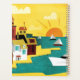 This design features a cute port city in a modern abstract design.
