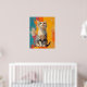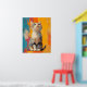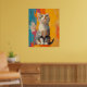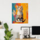 A vibrant digital portrait of an American Shorthair cat, captured in a moment of quiet curiosity. With its bright green eyes and distinctive striped fur, this feline sits upright against a dynamic background of orange, teal, magenta, and yellow brushstrokes. The expressive texture and bold colors bring life and personality to the piece, making it perfect for cat lovers, art collectors, or anyone looking to add a splash of charm to their space.