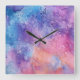 Abstract Purple Blue Mix Clouds Watercolour Art Square Wall Clock