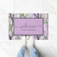 Abstract purple green branches script family name welcome Doormat. Personalise with your family name or text.