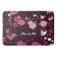The abstract purple pink paint splatter splash drops bath mat shows a custom name and is part of the Pink Bathroom Decor collection.