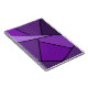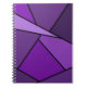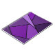 Inspired by stained glass, this stylish geometric design contains polygons in various shades of purple outlined in black. A lavender triangle slashes in from the upper right with an array of progressively darker purple quadrangles and other shapes spiralling around it from light to dark. Two dark purple shapes ground the left side of the original design.