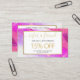 This creative referral card features a vibrant purple/pink watercolor background with faux gold dust flecks for a chic, abstract design. Encourage customer loyalty by having your clients refer a friend in exchange for a discount or promotion. Personalise the text for your own unique offering. A stylish design created for salons, makeup artists, hair stylists, nail salons and more. Original art and design © 1201AM Design Studio | www.1201am.com
