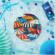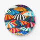 A cheerful depiction of sun-soaked days and seaside relaxation with colourful striped beach umbrellas.