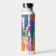The bottle looks even better in real life. The ice cubes I put in lasts all day! I have my bottle with me all the time. It's summer and having something cold to drink feels amazing. With this bottle I always have something super cold. I have only tried the hot drink once and it lasted a long time as well. The color blue is a navy blue and the white printed on it is vibrant. It printed perfectly. I love my personalized smile water bottle.