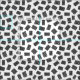 An abstract pattern made up of hand drawn rectangles each decorated with spots/holes.