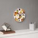 This wall clock has a mid-century modern design of rectangles and lines in 1970s colors.