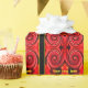 Abstract red, black and yellow colourful swirls personalised wrapping paper. Design by Susan.