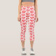 Abstract Red n White Stripes Valentine Heart Capri Leggings