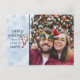 Fun and funny Christmas holiday photo greeting postcard with a nostalgic touch. An abstract red-nosed reindeer design is matched with "Merry Christmas from a Couple of Misfits" against a watercolor "blizzard." (PHOTO TIP: For fastest/best results, choose a photo with the subject in the middle and/or pre-crop it to a similar shape as shown BEFORE uploading and it will fill in the photo space provided perfectly.) The back side features an editable greeting/message area you can type in your own or delete to leave blank for handwriting. Note that the editable text font style, colour, size and placement can be modified. Contact the designer if you’d like this design on another product.