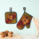 Abstract Red Orange Brown Green Fractal Art Flower Oven Mitt & Pot Holder Set